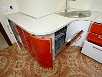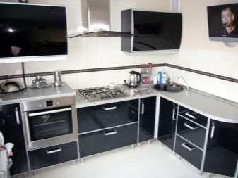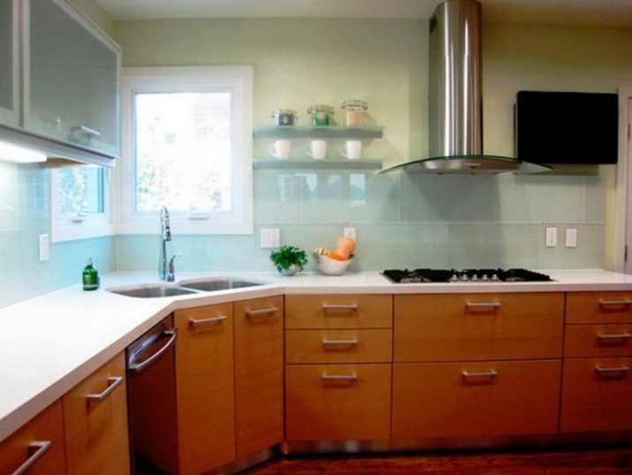 - Заема много по -малко място, което ви позволява да спестите място. За да постигнете такъв положителен ефект, трябва правилно да изберете всички останали атрибути на кухненския комплект..