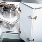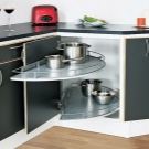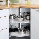 - Ако сте поставили пералня в кухнята, тогава ъгловият шкаф ще бъде чудесно място за съхранение на прах за пране, климатик и други домакински химикали. За такива цели можете да изберете функционална система от Ikea.