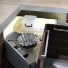 - Допълнете слушалките си с множество скрити чекмеджета. Тук можете да съхранявате не само прибори за хранене, но и други кухненски неща. Сгъваем контейнер и други подобни атрибути също няма да бъдат излишни..