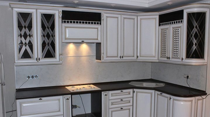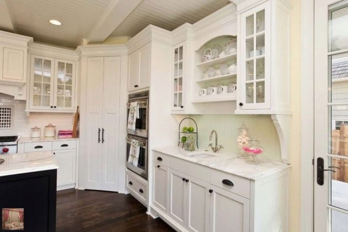 Отделно трябва да се отбележи външният им вид и разнообразието от модели. Можете да изберете напълно затворен ъглов гардероб с празни врати или, напротив, отворен със стъклени врати. Освен това последната опция изглежда много елегантна, производителите украсяват стъклени врати по различни начини с шарки, което я прави много стилна. Този кухненски шкаф е чудесно решение и може перфектно да допълни интериорния дизайн на вашата кухня..