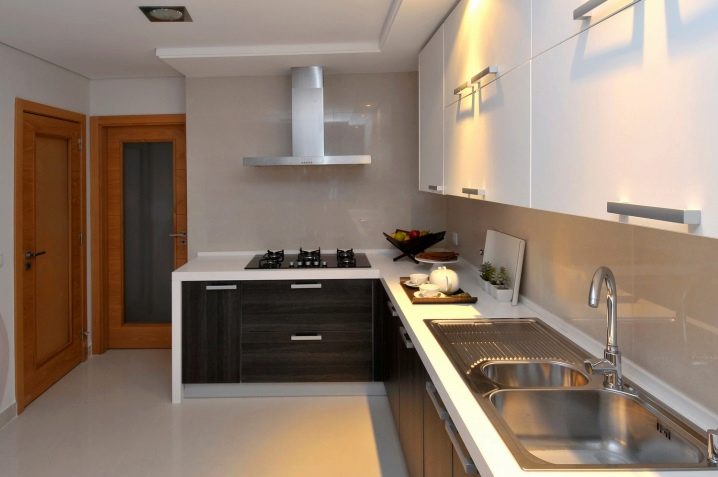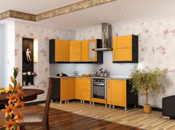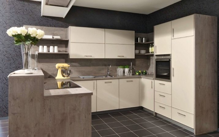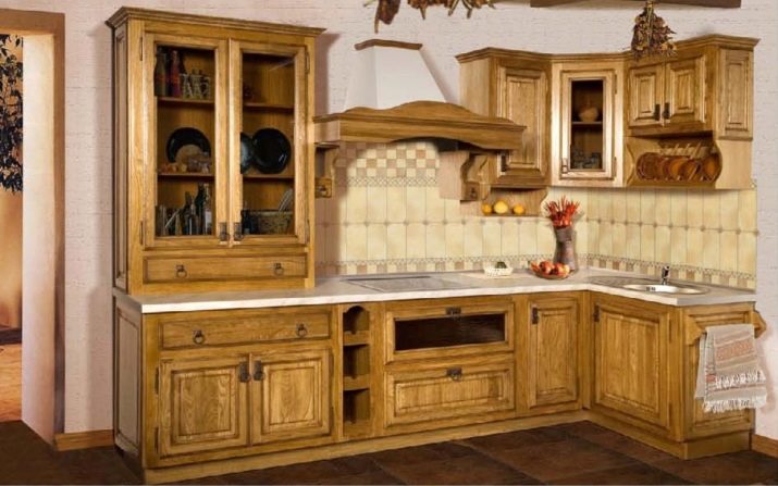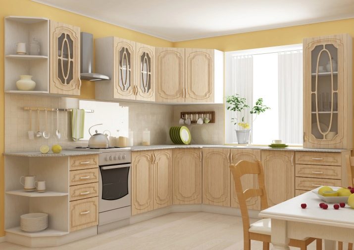 Най-популярни са L-образни ъглови шарнирни модули, тъй като ако отворите вратите на такъв шкаф, те няма да заемат допълнително място. И вътрешното пространство на този елемент от кухненския интериор ще бъде достъпно, дори ако не отворите напълно вратите на шкафа. Освен това всички кухненски прибори в такъв шкаф ще бъдат видими, така че не е нужно да купувате такъв модел, оборудван с допълнителни чекмеджета..