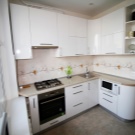 Вторият тип ъглови шарнирни кухненски шкафове е ъглов шкаф с права форма. Този модел шкаф е много гъвкав и удобен, защото можете да прикрепите към него други шкафове и други интериорни елементи от всяка страна. Правите ъглови шкафове са идеални за собственици на кухни с ъглови мивки. Но такъв модел има един съществен недостатък: достъпът до празна стена с такъв дизайн е труден, следователно, за да получите каквито и да било неща от дълбочината на шкафа, ще трябва допълнително да използвате специални фитинги.