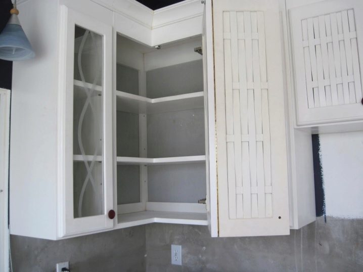 Ъгловите шкафове, монтирани на стена, са идеални както за малки кухни, така и за по-големи помещения. Разположението им е много удобно, с тяхна помощ можете лесно да оборудвате всяка кухня. Такъв шкаф може да бъде поставен във всеки ъгъл на стаята, той ще заема много малко място..