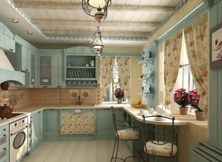 Класически. Естествеността е характерна за този стил. Използваните материали са естествено дърво, масивно дърво, стъкло. От цветята преобладават естествените светли цветове – избелен дъб, сандалово дърво, естествен дъб. Той е обемен, така че за много малки кухни не е най -добрият вариант. За да избегнете ефекта на претегляне, можете да комбинирате дърво със стъклени вложки..