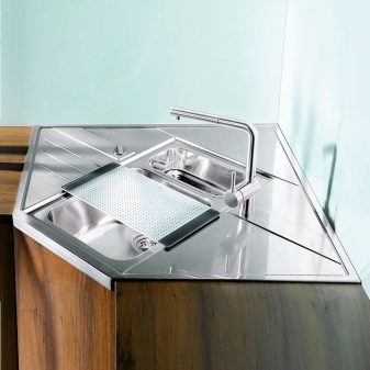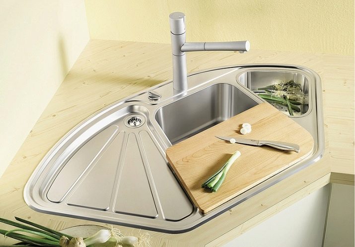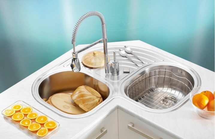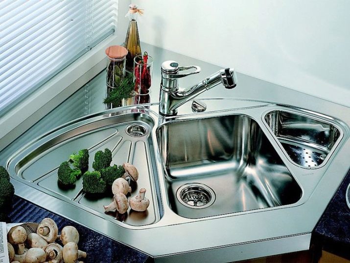 Много производители предлагат различни приставки като допълнителни аксесоари. Ъгловата конструкция от неръждаема стомана може да бъде оборудвана с мрежеста кошница за измиване на зеленчуци и плодове, както и с решетка за съдове, която съответства на формата на мивката. Това превръща стоманения продукт в многофункционално работно пространство, освобождава пространство наоколо и улеснява готвенето..