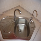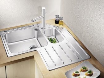 В малка кухня е подходяща компактна малка мивка. Като алтернатива това могат да бъдат две квадратни или правоъгълни купи, разположени под ъгъл една спрямо друга. При цялата си просторност, такава мивка заема много малко място..