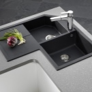 - Ъглови мивки под плота. При този метод мивката се монтира под нивото на плота. Предимството на такава мивка е, че можете лесно да пометете всички боклуци от масата в нея. Някои модели с подложки имат долно чекмедже. Предимствата на този дизайн включват неговата плътност: водни пръски не се изливат между ъглите на мивката. Въпреки това е доста трудно да се монтира мивка под масата..