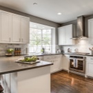 Горните шкафове могат да изсветлят недостатъците в оформлението. В случай, че таваните са високи – 3,5-4 метра, а стаята е тясна и правоъгълна, както е при сталинките, горните шкафове визуално ще увеличат ширината на кухнята.