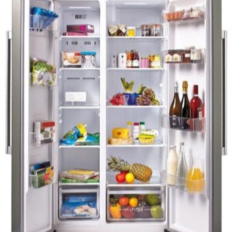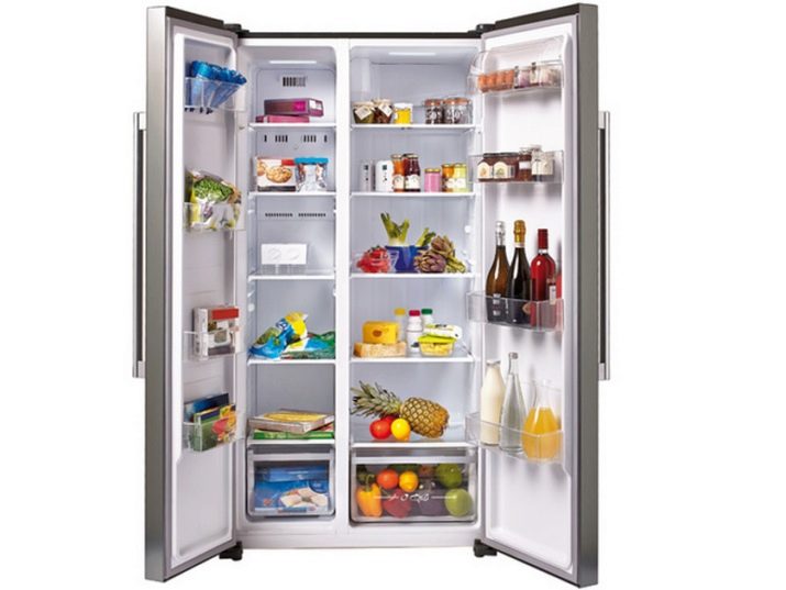 Най -популярният тип единица "Един до друг" (фризерът е разположен отстрани). Размерите му са 178x90x70 см. Обемът на апарата е 556 литра.