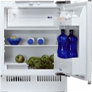 - Модел, който лесно се поставя под работния плот. Общият обем на хладилника е 120 литра, 101 от които са в хладилното отделение. Последният осигурява автоматично размразяване. Размразяване на фризерно отделение ръчно.