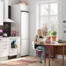 Той има относително малък размер и е идеален за малко семейство. Височината му е само 1,44 метра, дълбочината – 54, ширината – 60. В същото време тя побира 238 литра, 189 от тях – отделение за охлаждане. Вътрешното му оборудване дава възможност да се постави необходимото с максимална компактност и да се използва пространството с най -голяма ефективност..