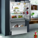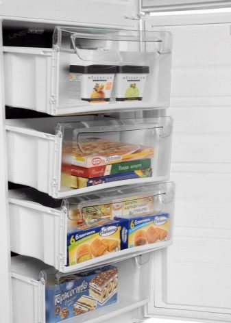 Хладилници с долно фризерно отделение (около тридесет модела) ще бъдат добър избор за тези, които обичат да съхраняват храна за бъдеща употреба: най -вместимите с височина над два метра имат общ обем от почти четиристотин литра. В тези модели можете да замразите прясна храна и да съхранявате замразени удобни храни в големи количества: фризерът има до четири отделения.