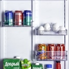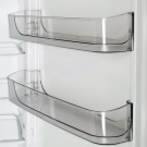 Новите елементи на интериорния дизайн на хладилника – дълбоки бариери -рафтове по цялата ширина на панела на вратата, еластичен ограничител на долната бариера за фиксиране и предотвратяване на преобръщане над високи бутилки, голям контейнер за зеленчуци или плодове – се открояват ефективно благодарение на използването на прозрачна пластмаса със син оттенък.