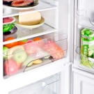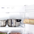 Рафтовете, изработени от удароустойчиво стъкло, не само издържат натоварвания до двадесет килограма, но и са удобни за използване. Ако случайно разлеете течност върху такъв рафт, тя няма да се разлее по цялото отделение на хладилника. Всяка бутилка или консерва винаги ще стои стабилно и няма да се преобърне. Издърпващите се кошници или контейнерите за фризер са удобни за съхранение на замразени храни. Пластмасовите кошници могат лесно да бъдат извадени от фризера с помощта на предните и страничните дръжки.
