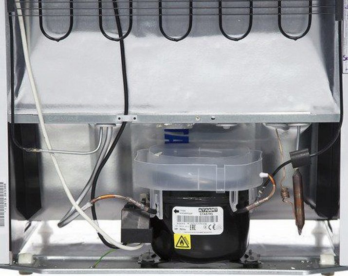 Сланата, която се образува на задната стена на камерата, периодично се превръща във водни капчици. Водата частично се изпарява, поддържайки необходимото ниво на влажност, а остатъците й се стичат по тръбата в съда на компресора. Там те се изпаряват от топлината, генерирана от компресора. Таванната светлина подобрява осветяването на хладилната камера, като заема минимално пространство.