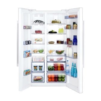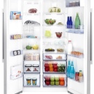 Нека започнем с преглед на моделите Един до друг. Това е устройство с две врати с доста големи размери. Едната врата крие хладилното отделение, другата – фризера. Устройството е оборудвано с филтри и въздушен йонизатор, които унищожават микробите и микроорганизмите, поради действието на които хранителните продукти се влошават. Но въпреки доста големите размери, класът на консумация на енергия съответства на A, A +, което е много икономично. Благодарение на функцията "Без замръзване", която присъства в двете камери, не е нужно да се притеснявате за размразяване, тъй като ледът не се образува в камерите. Продуктите са защитени от повреда при неочаквани прекъсвания на електрозахранването, тъй като висококачествените материали позволяват да се поддържа температурата в продължение на 21 часа след прекъсване на електрозахранването. В допълнение, производителят е предвидил възможност за икономия на енергия, благодарение на режима “ваканция”. Дизайнът е лаконичен, модерен. Цветен спектър: бяло и сребристо.