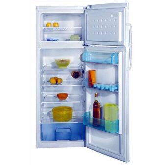 Той има малък размер, но въпреки това се побира в достатъчен обем продукти.. Отделението за фризер се намира отгоре и системата не е инсталирана в него. "Без замръзване". Това означава, че ще трябва да се справите с размразяването ръчно. Хладилното отделение е оборудвано с рафтове, които можете да поставите по ваша преценка. Енергийният клас съответства на тип A, A +, което спестява разходи. Приятна допълнителна функция е възможността да преместите вратата от другата страна. Външният вид на устройството е класически строг, а цветът е бял.