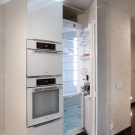 Хладилното отделение е предназначено за голям обем продукти; има рафтове и чекмеджета за лесно съхранение..