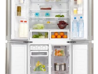 Голямо търсене са и вградените модели. За голямо семейство хладилник с много врати във версии с френска врата и рамо до рамо е перфектен. Неговото предимство е неговата многокамерна, която ви позволява да съхранявате запаси от продукти за дълго време, запазвайки оригиналната им свежест. Камерите за хладилник и фризер в тях са много по -големи спрямо предишната категория..