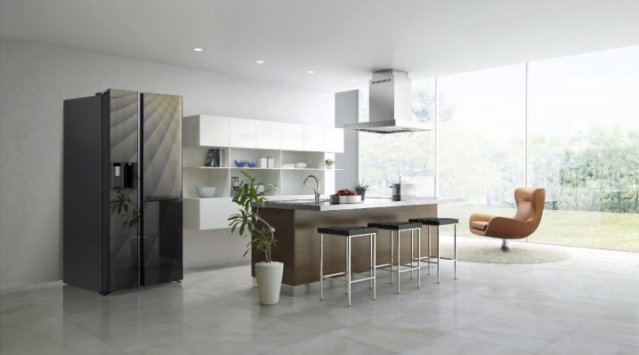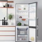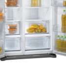 - Прилагане на съвременни технологии. Освен това на потребителите се предлагат редица възможности, а именно: ефектът на инфрачервеното лъчение от лампи, което предпазва продуктите от разваляне, вграден бар, в който е изграден механизъм за разпределяне на лед за приготвяне на безалкохолни напитки. Тази функция работи автономно, не изисква отваряне на вратата, докато устройството е свързано към водопровода за правене на кубчета лед. Прахопоглъщащите средства са монтирани вътре в камерите, улавяйки и отстранявайки външни миризми. Уредът може да се управлява по електронен път и сам да сигнализира за открити неизправности и отворени врати.