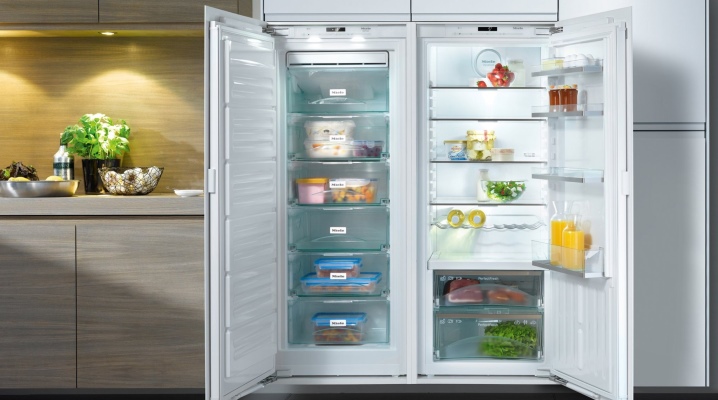 Устройството с две врати лесно ще се впише в него, просто трябва да вземете предвид характеристиките на вентилационната система. За да може хладилникът да работи по -дълго, се монтират ограничители за отваряне на врати. Най -важното е да създадете циркулация на чист въздух, за да поддържате студа.