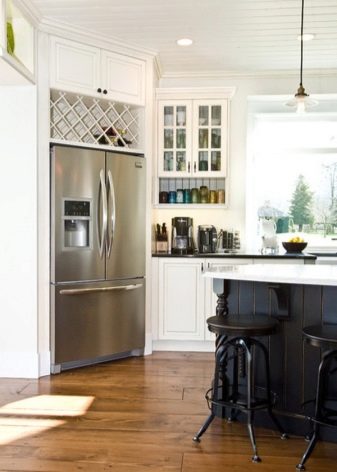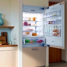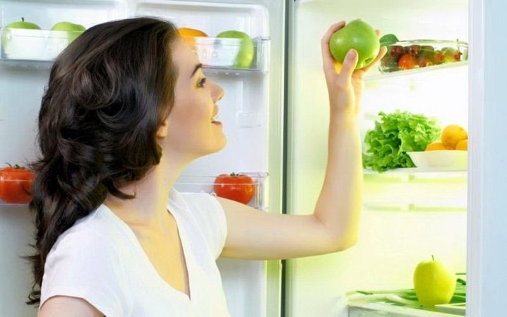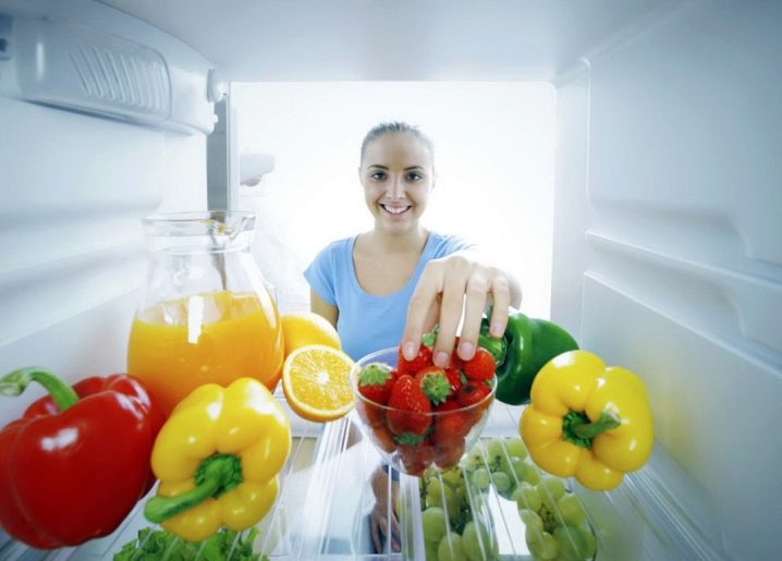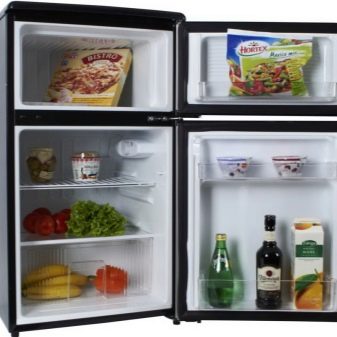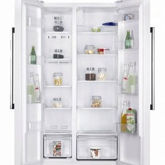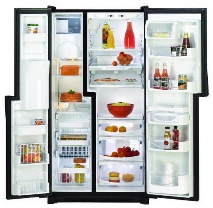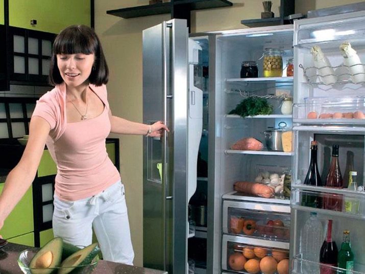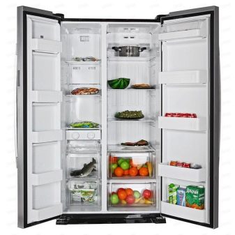 Вътрешното пространство на такива модели е оборудвано с разтегателни рафтове, контейнери, джобове и отделения, в които можете да съхранявате различни храни и напитки..