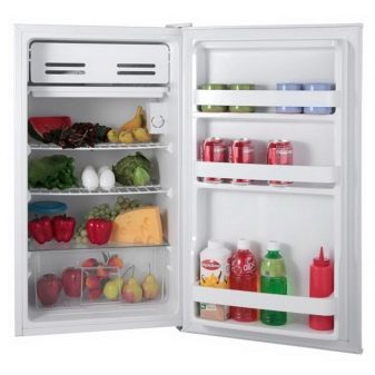 Състои се от хладилни и замразяващи камери. Обемът на последния е 5 литра. Всичко останало е запазено за хладилното отделение.. Вътре е оборудван с три рафта и отделение за съхранение на бутилки. Поради своята компактност и лекота на използване, в съчетание с добра вместимост, той се използва широко не само в апартаменти, но и в хотели или офиси. Работата на такова устройство се регулира от електромеханичен превключвател. Размразяването тук се извършва ръчно. Вратата на оборудването може лесно да бъде претеглена, като я регулирате според вашите нужди и предпочитания.