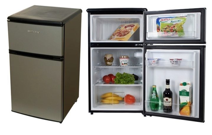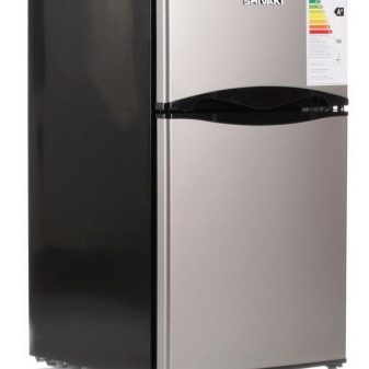 Фризерът в такова устройство е разположен отгоре и се състои от едно отделение. Работи почти безшумно, което ви позволява да го инсталирате не само в кухнята, но и във всяка друга стая. Често се купува за офис площи. За да спестите място в малка кухня, отгоре SHRF 90DP можете да поставите микровълнова фурна. Системата за размразяване в този модел е ръчна, което е може би единственият му „недостатък“.