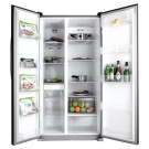 Общият обем е 527 литра, 183 от които са предназначени за фризера. По размери дори надминава SHRF-620SDG-B – височината му достига 179 см, докато дълбочината е 74,5 см, а ширината е 89,5. Оборудван със системи за автоматично размразяване, бързо замразяване, ускорено охлаждане, антибактериална защита. Също така е възможно да зададете режим на ваканция – което ви позволява да пестите енергия по време на отсъствието на собствениците.
