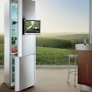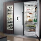 Хладилникът принадлежи към същата категория вградени устройства. Siemens "Electrogerate gmbh". Той се вписва идеално в малки пространства. Въпреки че е интегриран, той може да побере голям брой продукти. Устройството има две врати. Фризер в долната част. Контролният панел се намира в горната част на предния панел. Настройката на необходимия режим е доста проста. Работи доста тихо, което е важно. Много потребители искат нещо ново и различно за себе си. Оригиналното решение ще бъде хладилник със стъклена врата, той ще добави жар към кухненския интериор. Фризерът се намира в долната част. Надеждното немско качество на това устройство с двойна верига гарантира дългосрочна работа.