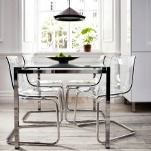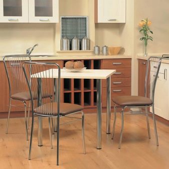 - кухненските столове с хромирани крака трябва да бъдат оборудвани със специални пластмасови накрайници, за да се предотврати повреда на скъпите подови настилки. Освен това звукът от преместването на мебелите не трябва да наранява ухото;
