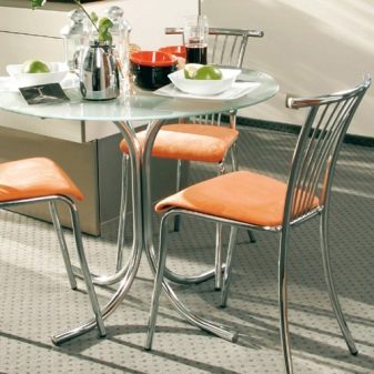 Хромирани столове най -рационално за използване в кухнята. От всички домакинства, това е по -податливо на замърсяване с мазнини от други. Освен това влажността в кухнята е висока. Не всички материали са способни да поддържат безупречен външен вид за дълго време при такива условия. Хромните мебели обаче не плашат атмосферата на кухнята..
