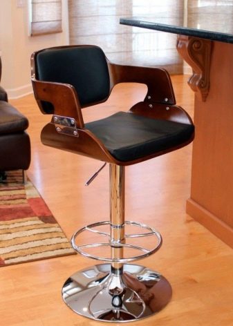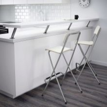 Кухнята е проходимо място, така че табуретките, които винаги са заплетени под краката, ще дразнят и лишават членовете на домакинството от тяхната маневреност. Никой няма да хареса да се спъне дори в най -красивите столове. В просторна кухня няма ограничения, така че всичко зависи от вашия вкус и въображение. В семейства с деца често се използват столове регулируема височина. Освен това изглежда впечатляващо и стилно..