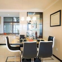 Ако харесвате столове с мека облегалка, тогава се обърнете към модели с кожена тапицерия. Това е по -практично, тъй като такава повърхност се измива лесно и не абсорбира миризми и е много по -удобно да седнете с лакти на такъв гръб. За допълнителен комфорт можете да закупите столове с подлакътници, но тази опция е достъпна за хора, които нямат наднормено тегло. Моделите с хромирани крака работят най -добре със стъклена или пластмасова маса.
