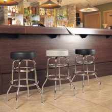 Хромът върви добре както с дърво, така и със стъкло. Материалът за тапицерията на седалките може да бъде плат, но по -често кожа или изкуствена кожа, тъй като това е по -практично. Краката могат да бъдат с всякаква форма: прави или необичайно извити. Бар столове с хромирани крака са незаменими в интериора на барове и нощни клубове, а много хора обичат да имат бар плот у дома, където също ще влязат в действие стилни високи конструкции.
