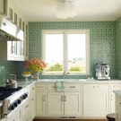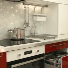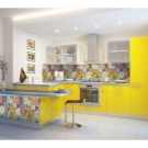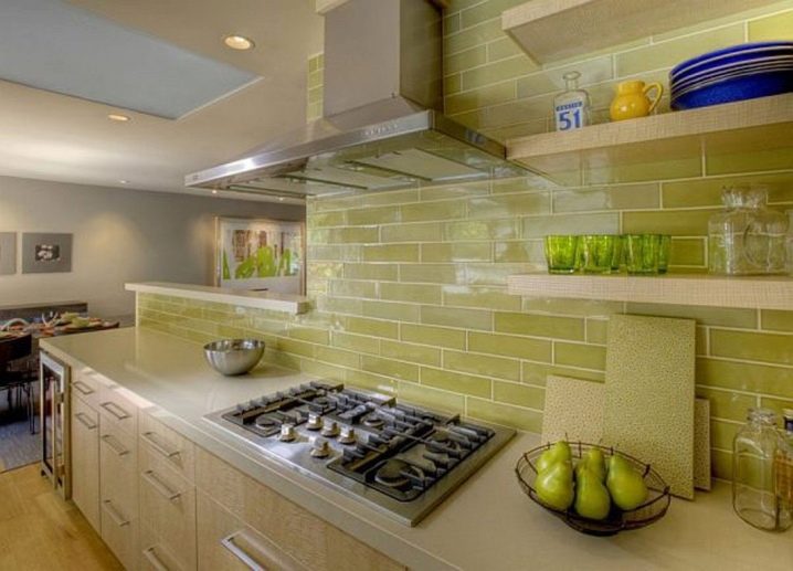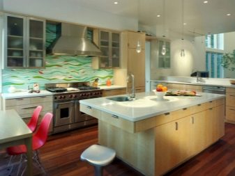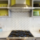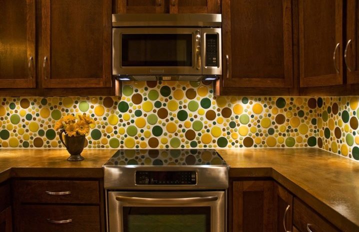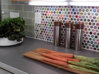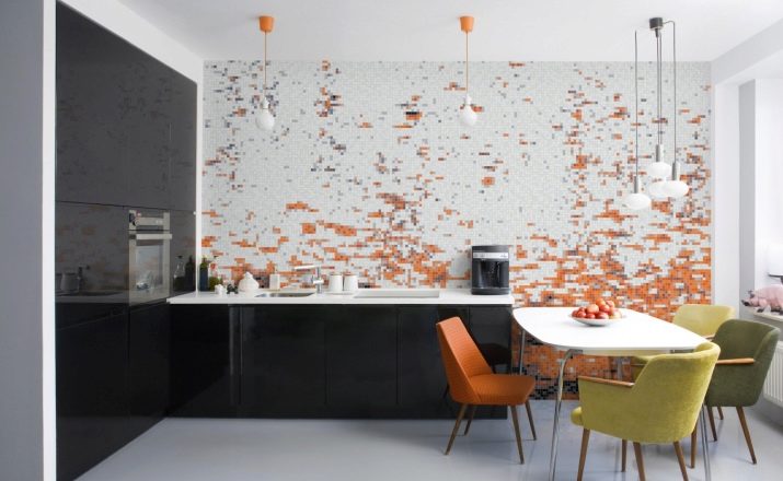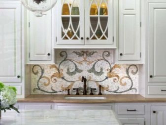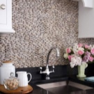 Наред с престилки от керамични плочки, мозайки също са популярни. Такава повърхност се състои от малки детайли, които в резултат образуват или картина, или прост модел. Струва си да си купите престилка, в която картината вече е съставена за вас, без да рискувате да я сглобите сами от отделни малки плочки. Такъв ярък цветен детайл ще изглежда много добре в обикновен интериор..