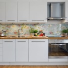 Ако предложените опции за престилки ви се струват твърде скучни, тогава винаги можете да създадете изображение, което да украси вашия интериор сам. За да създадете престилка с уникална картина, изображението по ваш избор се прилага върху стъклото. Можете да избирате от прости снимки или нещо по -лично, като семейни снимки, портрети или дори цели колажи..