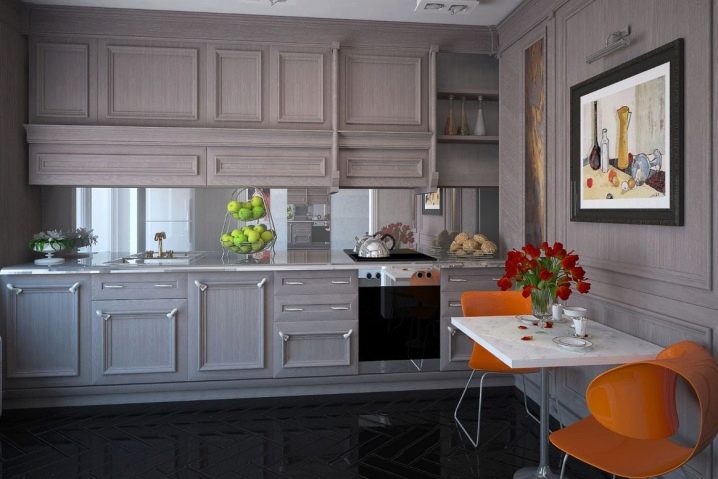 Огледална престилка изглежда стилно и нестандартно. За тази цел се препоръчва да се избере специално обработена огледална повърхност, устойчива на замърсявания и влага. Можете също така да вземете оригинална огледална престилка в античен стил. Друго предимство на престилките с огледална повърхност е, че те помагат за визуално разширяване на пространството. Именно поради тази причина те често се използват в малки кухни..