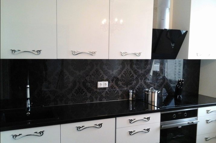Има само два изхода от тази ситуация. Първият е да поставите такава престилка далеч от работната зона. Но тогава практическата му стойност се губи. И второто е да покриете повърхността, украсена с тапи, лак или дебело стъкло.
