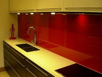 Престилки от матово стъкло изглеждат стилно и модерно. Не е необходимо стъклото да е прозрачно. Стъклото, направено в полупрозрачен нюанс на розово, люляково, синьо или всеки друг цвят, подходящ за интериора на вашата кухня, ще изглежда ефектно. Интересно изглеждат и престилки, състоящи се от няколко цветни панели от матирано стъкло..