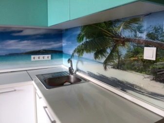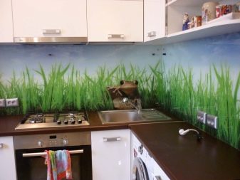 Всички видове пейзажи са винаги актуални. Престилката, изобразена на морето, покритите с лед планини или зелената гора, ще ви помогне да създадете уютна атмосфера в кухнята. Снимките, изобразяващи природата, са чудесен вариант както за кухнята, където вечеря голямо семейство, така и за дома на ергените..
