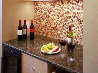 Можете да използвате тапи за вино като декорация за кухненска престилка, като просто нарежете тапите на тънки кръгчета. Те, подобно на копчетата, просто трябва да бъдат залепени върху кухненската престилка. Корковото платно изглежда интересно и необичайно. Но той има значителен недостатък – такъв материал много лесно абсорбира цялата мръсотия и изобщо не се почиства.