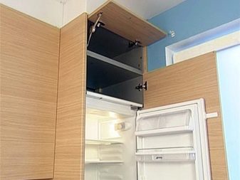- Напълно скрит. Конструкции от този тип са скрити вътре в слушалките, което прави възможно да не се наруши основният дизайн на мебелите в стаята. Този подход се използва най -често с малки хладилници, които са сравнително лесни за поставяне в шкафа..