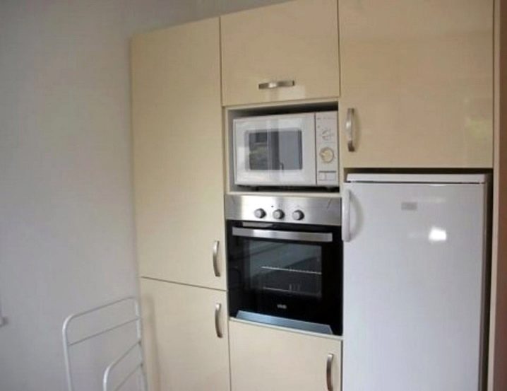 - Не се препоръчва вградените хладилници да се поставят от край до край към други подобни структури (микровълнова фурна, газова печка). Ако системата е малка и се намира в долния шкаф, също е нежелателно да поставяте всякакви котлони над нея..