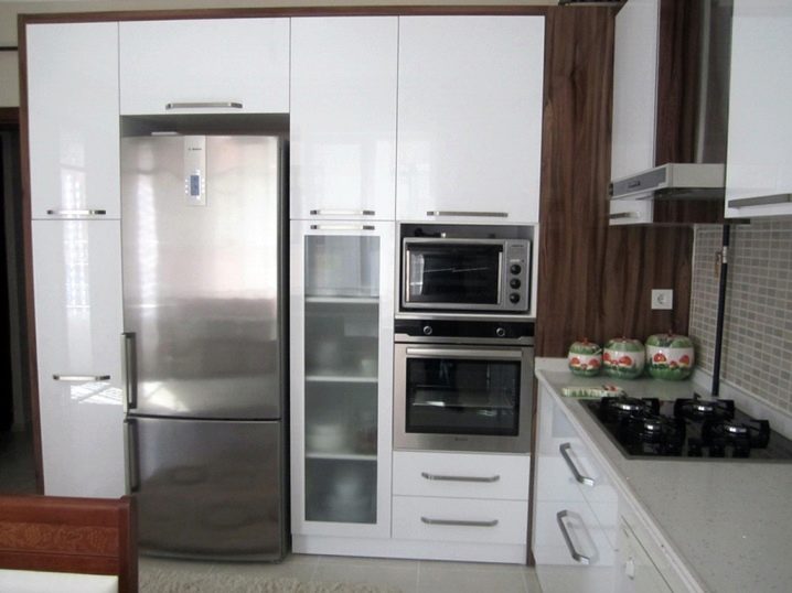 - Външен дизайн на панела. Вградените хладилници са направени от специални вещества, които позволяват декориране на повърхностите им. По този начин можете да съобразите цвета на вратите с основния дизайн на кухненските мебели. Днес на пазара има много видове тези продукти, които могат да бъдат избрани за всеки тип интериор..