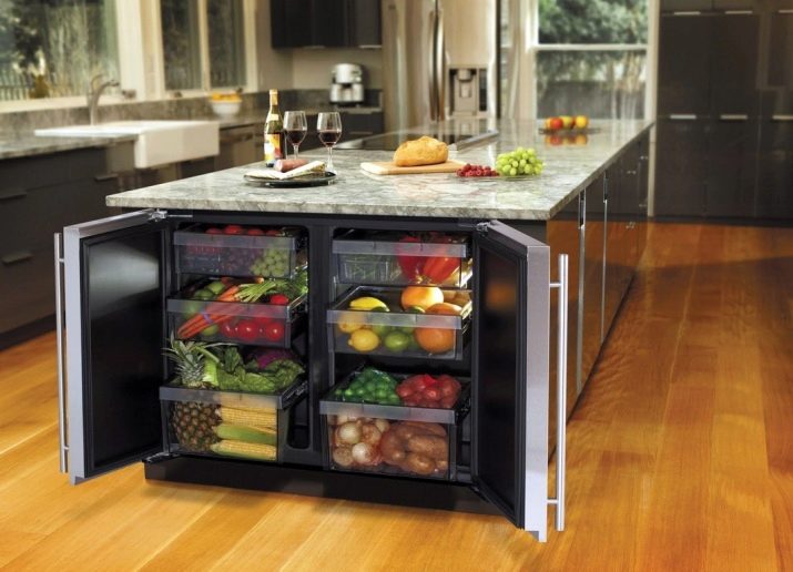 - Практичност. Вградените хладилни системи могат да бъдат инсталирани навсякъде в къщата, където има подходящ комплект мебели. Моля, обърнете внимание, че такива механизми се използват не само в ежедневието, но и в много съвременни офиси и бизнес центрове..