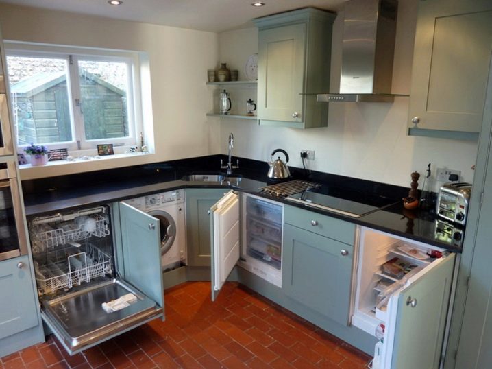 - Размери (редактиране). В повечето случаи формата и размерът на такива структури могат да се различават от стандартните модели. Тези характеристики могат да варират в широк диапазон, което прави възможно монтирането на конструкции както директно в дълги шкафове на пълна височина, така и в малки шкафове под плота на масата..