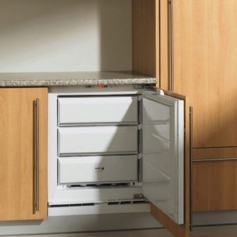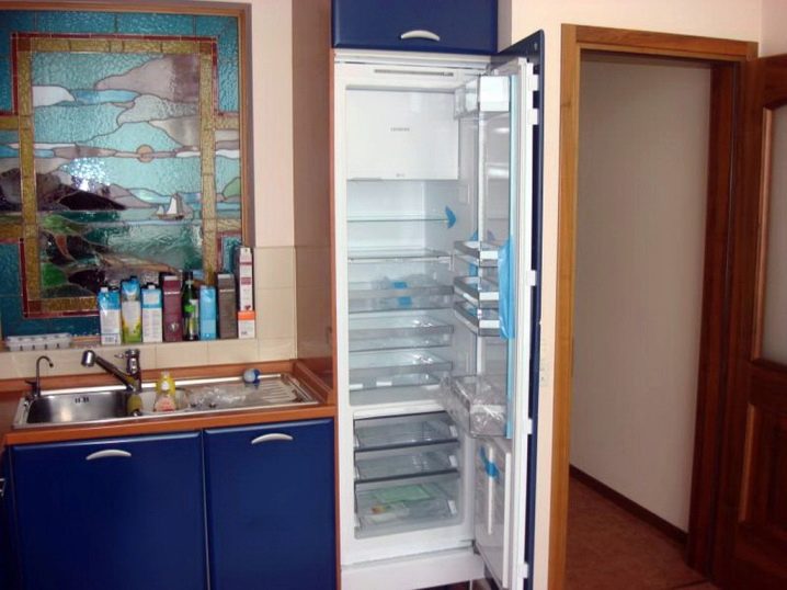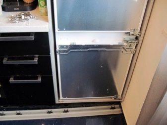 - Напълно скрит. Конструкции от този тип са скрити вътре в слушалките, което прави възможно да не се наруши основният дизайн на мебелите в стаята. Този подход се използва най -често с малки хладилници, които са сравнително лесни за поставяне в шкафа..