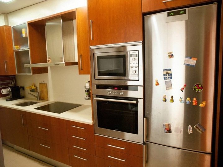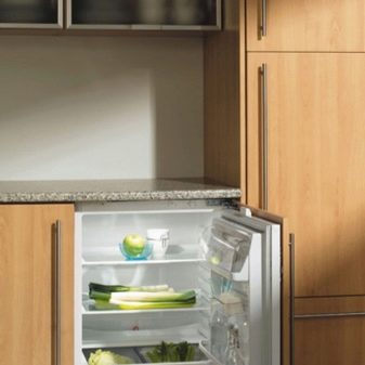 Технически вграденият хладилник е обикновен домакински уред, който просто се поставя не в отделен ъгъл, а в специална ниша, изработена от дърво и която е част от кухненския комплект.