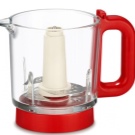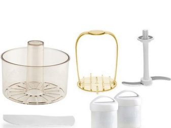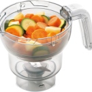 Комплектът включва контейнер за шпатула, приставка за чопър с капаци, два контейнера с капаци и затопляща стойка. Бульонът от приготвената храна се влива в купата. Може да се използва след това за приготвяне на картофено пюре..